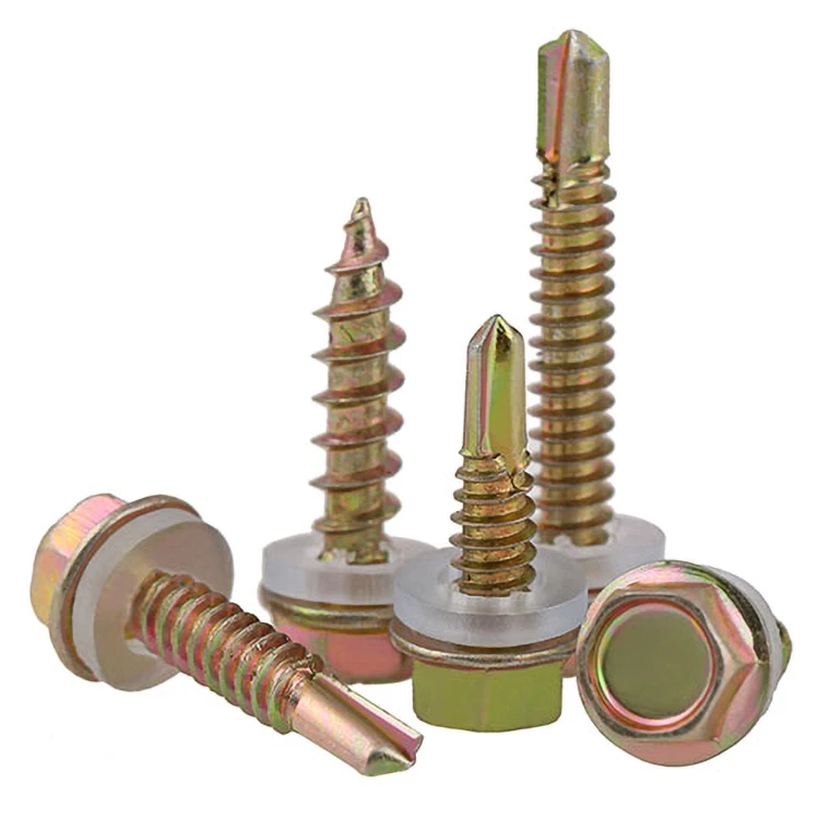 Винты с шестигранным самосверлением из углеродистой стали с нейлоновой пластиковой плоской шайбой