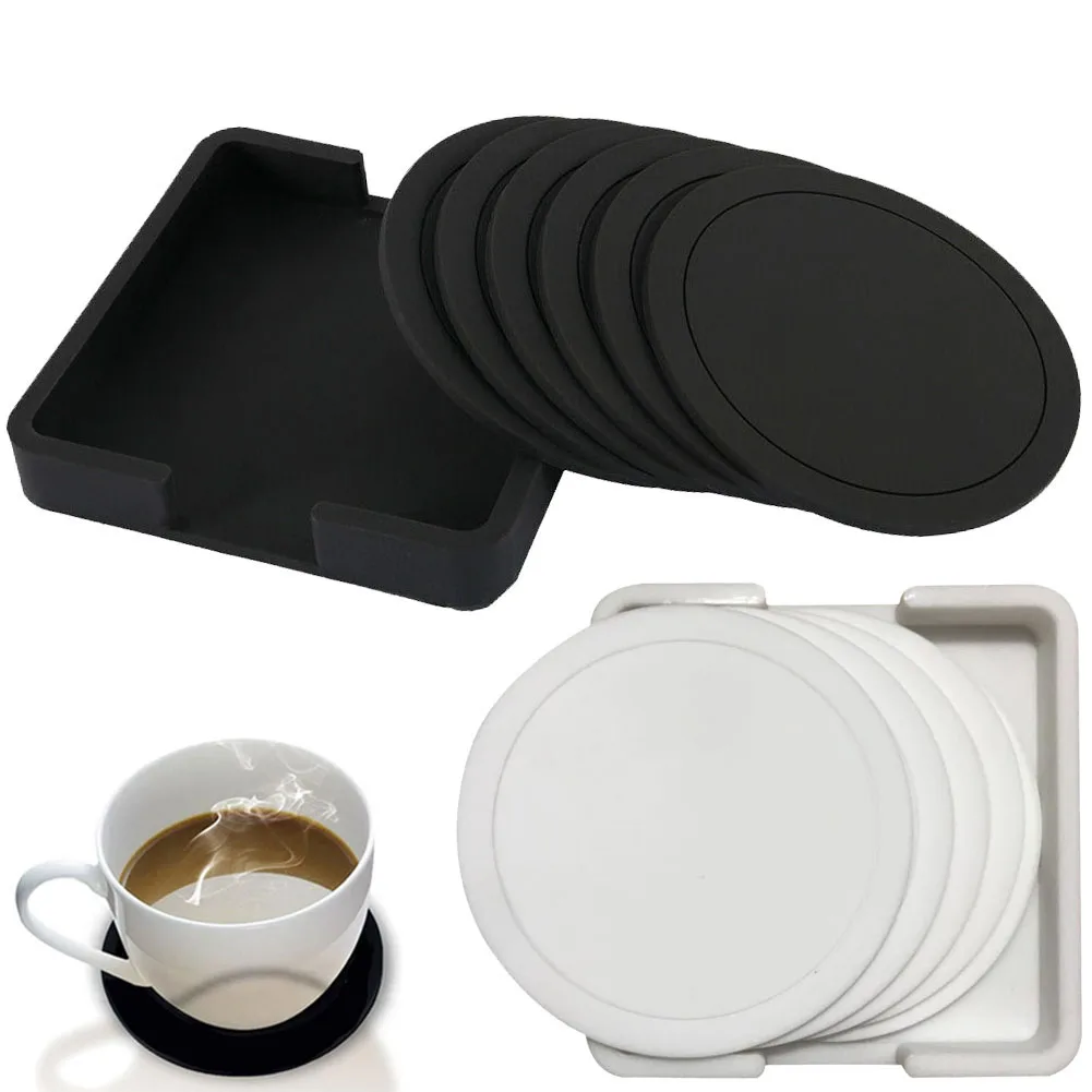 Набор нескользящих силиконовых подставок для напитков, подставка под чашку, набор ковриков круглой формы, черный Настольный коврик для дома и офиса