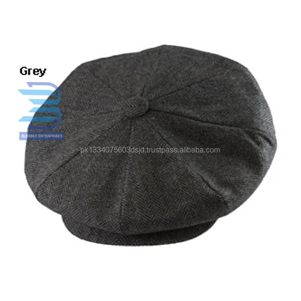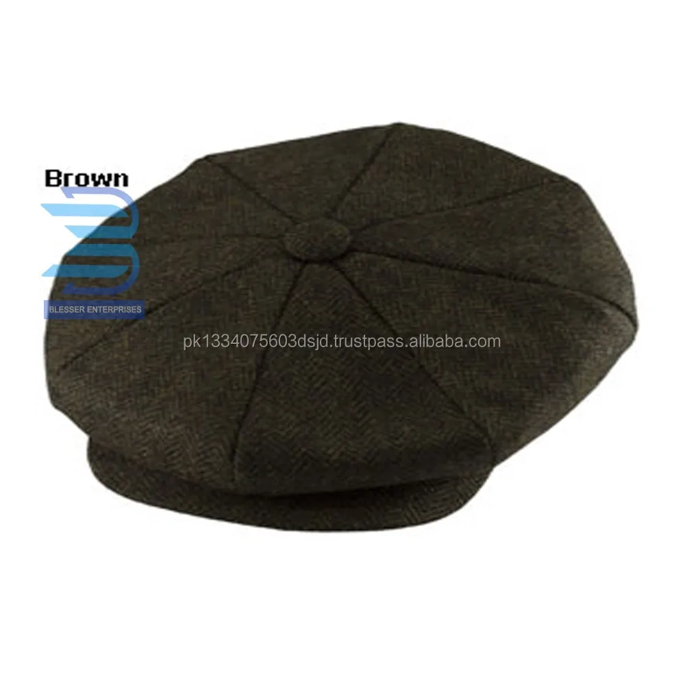 New Design 100%Wool Herringbone Big Apple Cap Tweed Cap