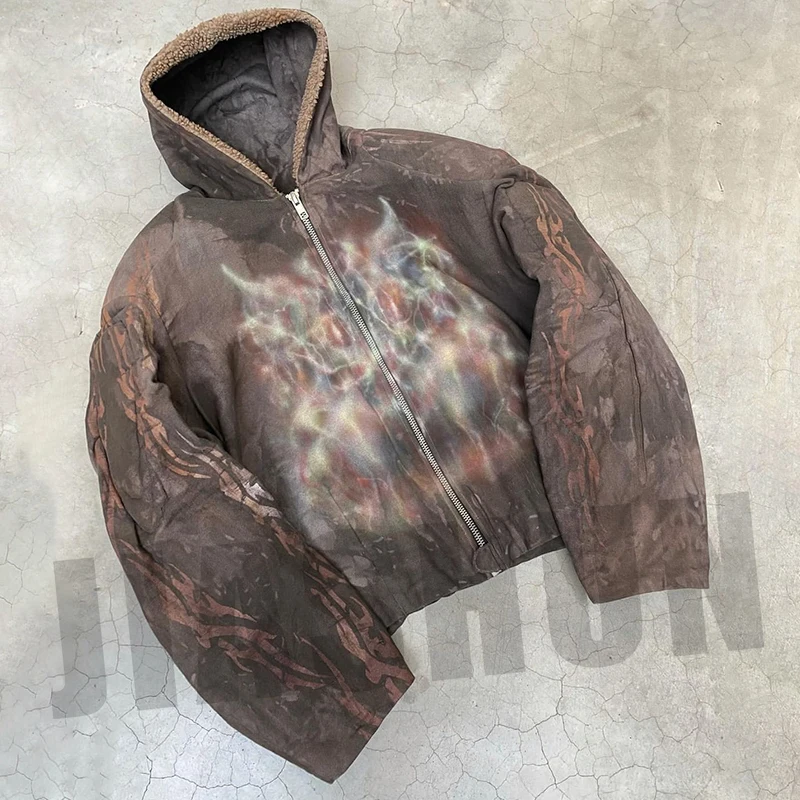 Уличная одежда на заказ с цифровым принтом пальто оверсайз молнии черная легкая зимняя хлопковая холщовая куртка гусином пуге для мужчин
