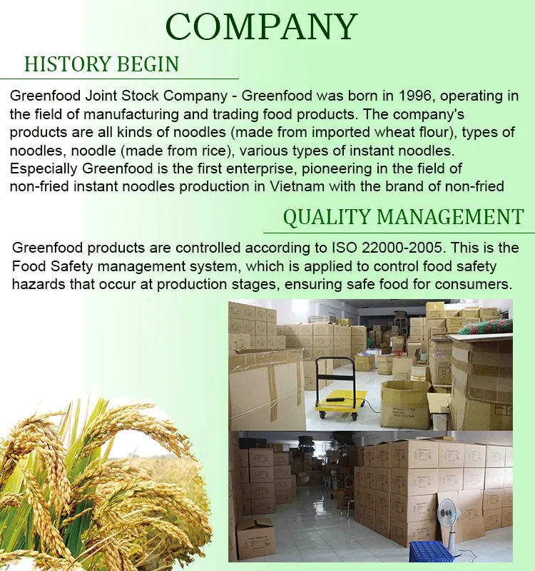 "NEWWAY" INSTANT NOODLE is an indispensable instant food to help you solve the busy situation, do not have time to cook, with only 3 'waiting you can enjoy right away bowl of hot and delicious noodles. Products are produced from clean, safe raw materials, modern processing lines according to Japanese technology, ensuring the quality of products. Modern production technology: NewWay Instant Noodle is produced based on Japanese standards and technology under the continuous and meticulous support and supervision of Japanese experts and Vietnamese human resources. Well-trained to ensure the quality of the product.