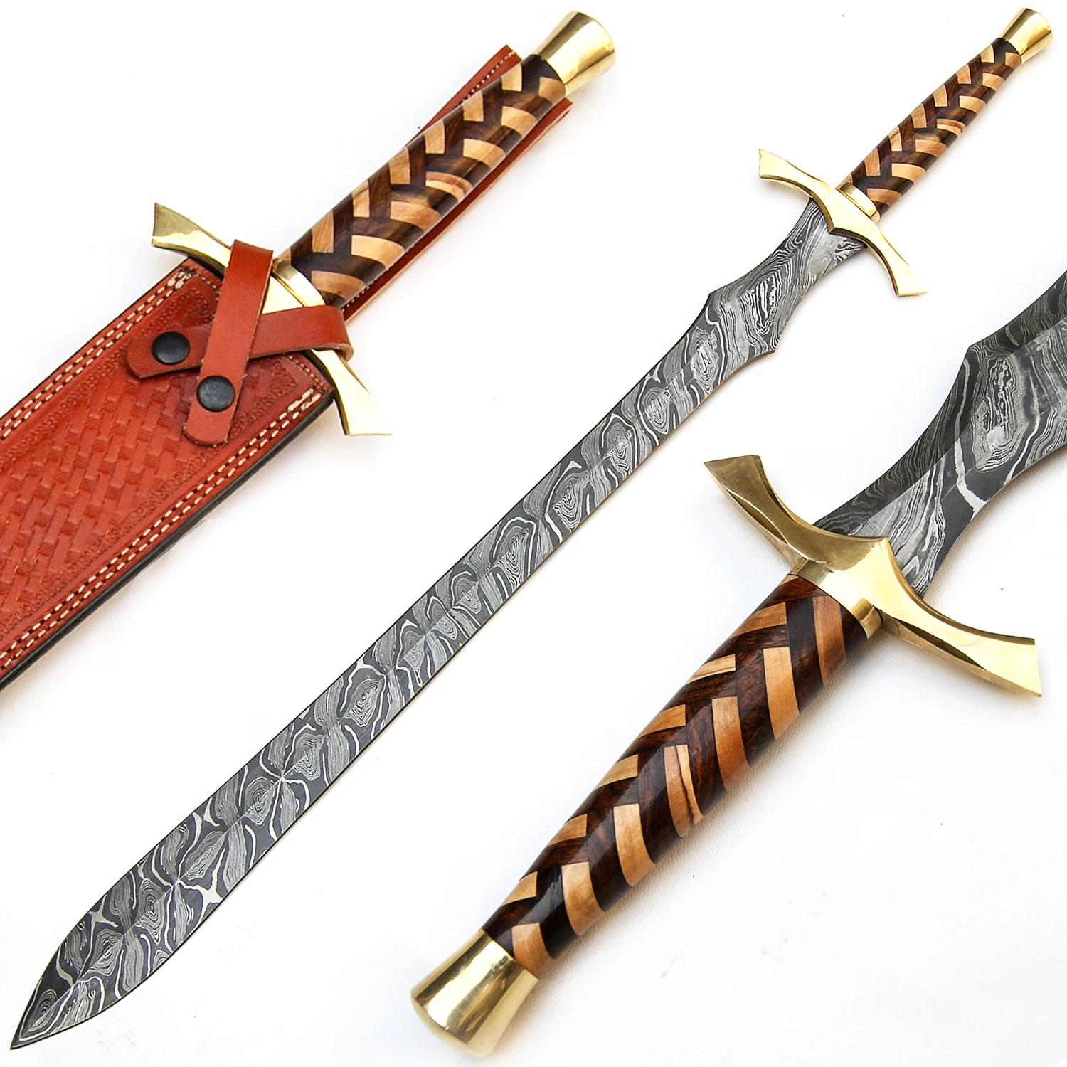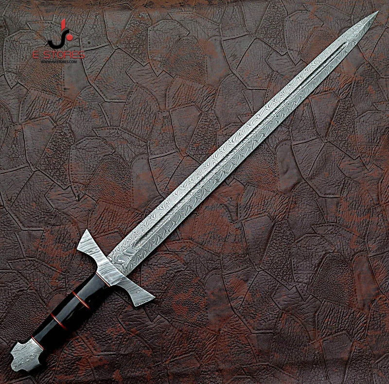 Дамасский стальной меч, красивый ручной работы меч из чистой кожи