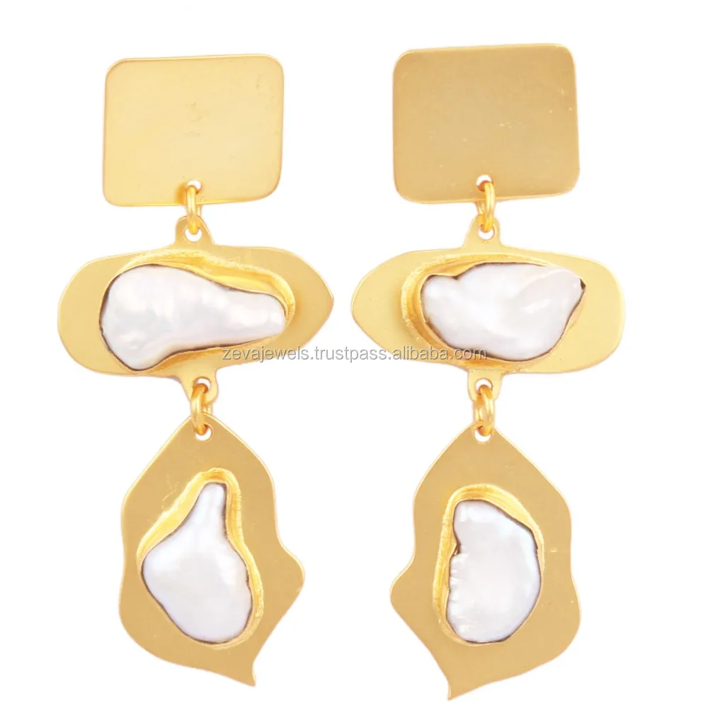 This beautiful stylish & fashionable earring made with 24k gold plated plated freshwater pearl stone. This contemporary gemstone earring design will make for out standing glamorous look. Zeva Jewel is self manufacturer that houses high quality jewelry and accessories with strikingly exquisite designs. With its affordable rates and unique shopping experience, Zeva Jewel is your one stop destination for making any given day an occasion.
