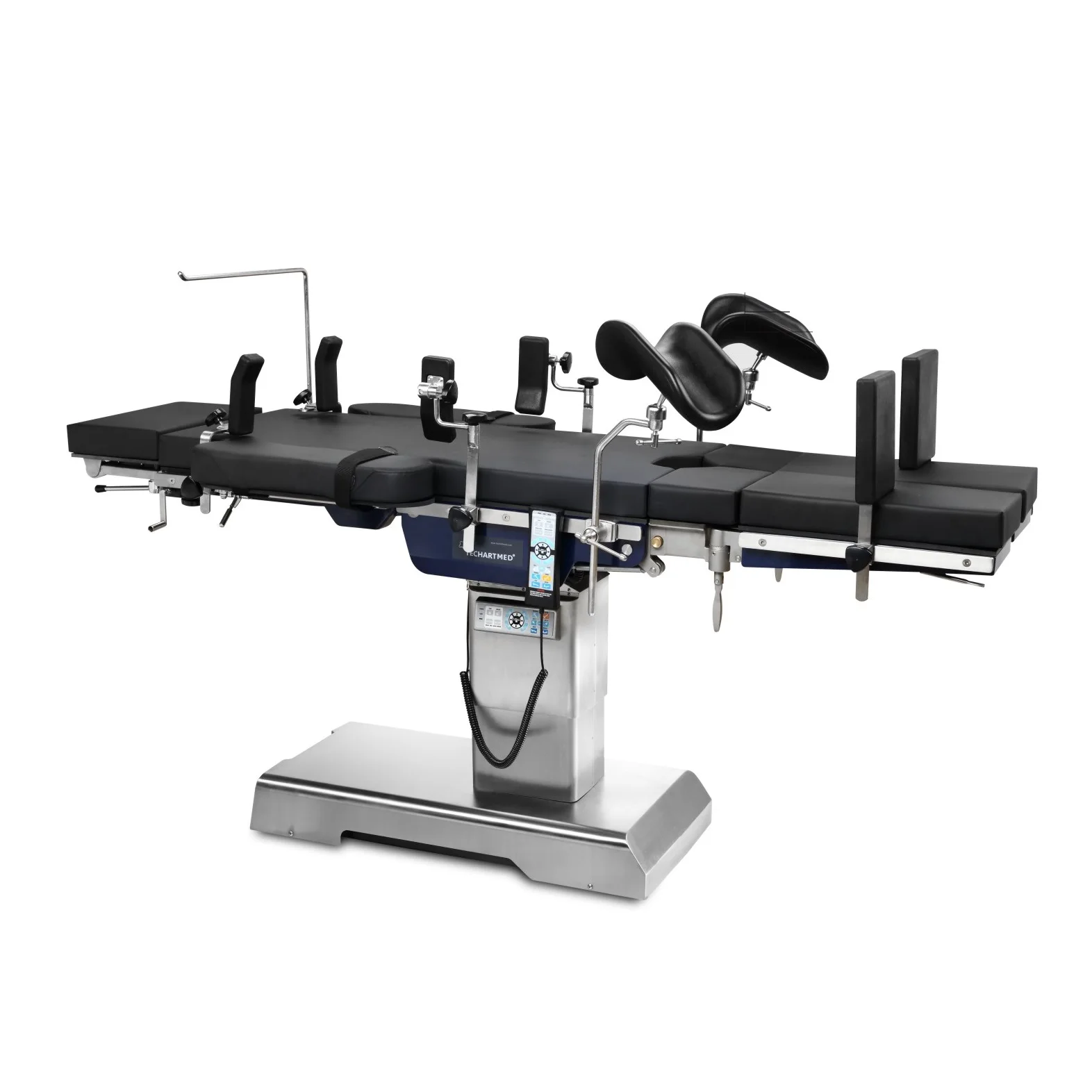 THIS IS 4 FUNCTION ELECTRIC OT TABLE . this is suitable for all kind of surgeries i.e. general surgery, cascular surgery, cardio, neurology, urology, gynecology, proctology, laparoscopy, traumatic surgery, plastic surgery and others. The base & column of the table is made of high quality medical stainless steel (Grade - 304). Non-reecting surface, antibacterial & easy to clean. We provide in this table 4 function in electric electric function is.Height adjusment, Lateral Tilts, Trendelenburg, and Flex - Reex, Chair Position and Longitudinal Sliding top are realize by Remote contro