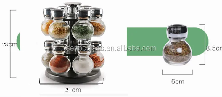 Description: | Multipurpose12 Pcs Revolving Glass Spice Jar Rack Storage Organizer |