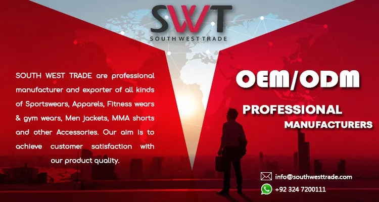 South west trade are professional manufacturers of Apparel, Sports wear and fitness wear. We are OEM, ODM manufacturers and exporters of apparel, sports wear and all kinds of fitness wear.