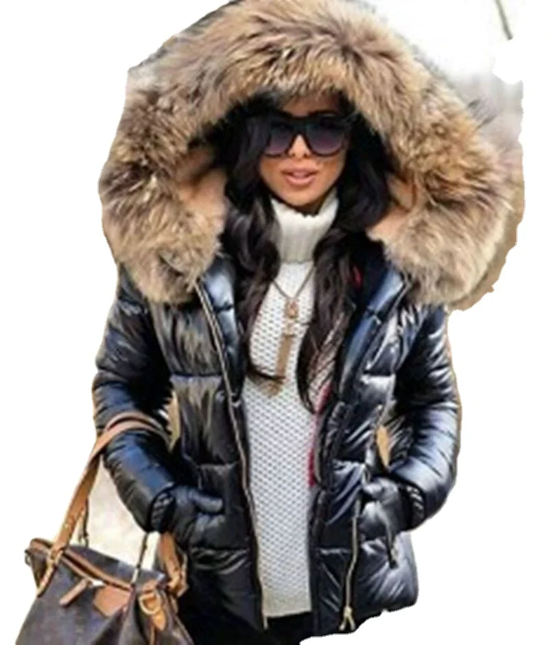 Оптовая продажа модное Стильное элегантное женское зимнее пальто с большим меховым воротником утепленная хлопковая одежда повседневное пуховое подкладкой