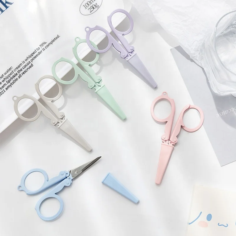 Красота Цвет быто складные ножницы из нержавеющей стали DIY ручной учетную запись мини-ножницы с силиконовой крышкой