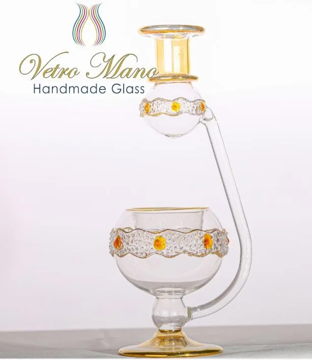 Only by Vetro Mano., handmade glass manufacturing is again an amazingly beautiful and collectible state-of-art. Produced in Pyrex glass to withstand greater pressures and heat, each piece is painstakingly hand blown, engraved and hand crafted by Egyptian artisans at the top of their profession. With the hand tinting and delicate, each design is being unique.