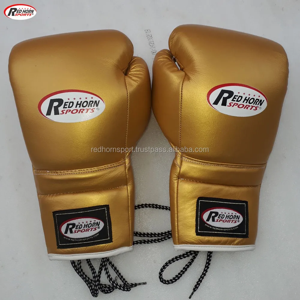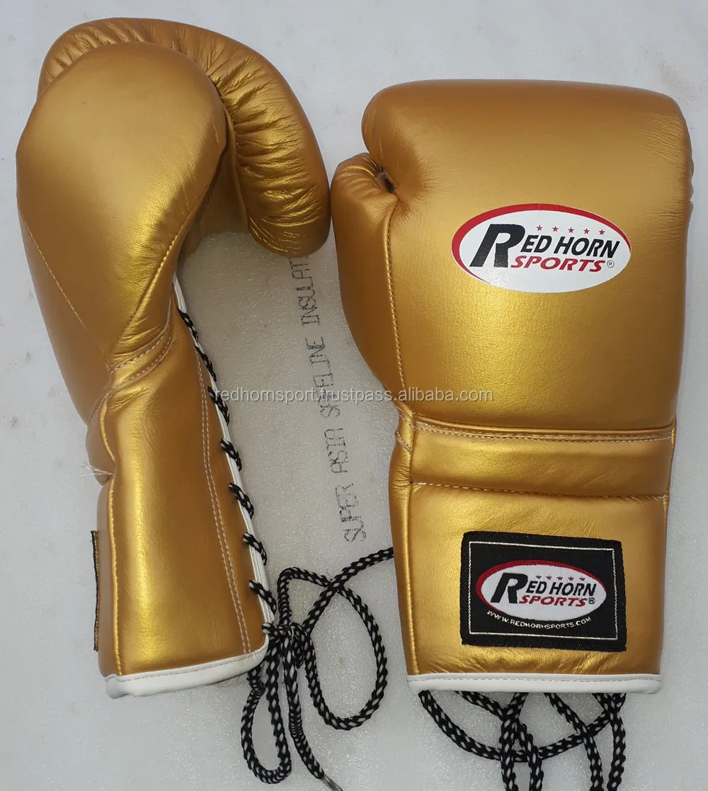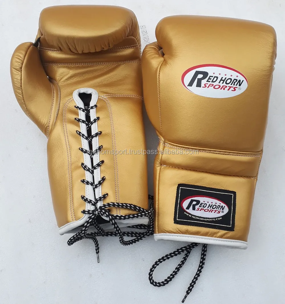 Red Horn Sports Boxing gloves are made from top grade Cowhide leather, Looks professional and having long life. Frange sponge padding. Beautiful Laces for tightening the gloves, Metallic series design and grace appearance to meet different requirements.