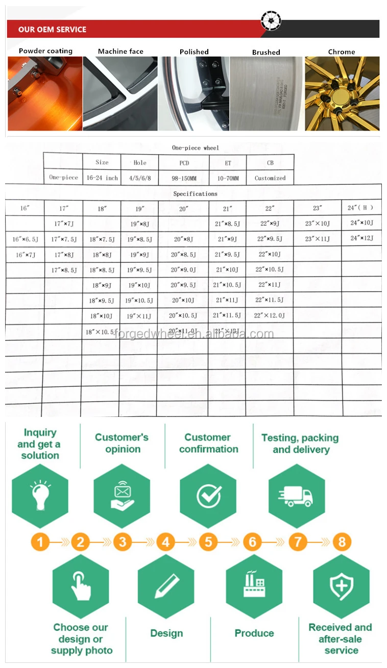 A:We have a professional design team, before we produce the rims ,will draw 3D design drawing according to your requirements and your car data.After you have confirmed the effect and data will begain our production.