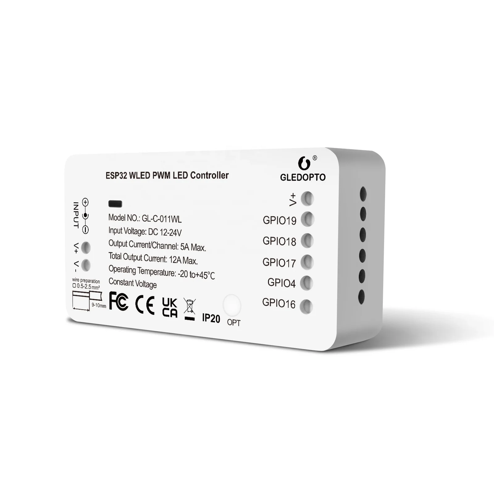 Горячий светодиод Gledopto ESP32 WLED PWM RGBCCT/RGBW/RGB/CCT/Одноцветный входное напряжение DC 12-24V 12 A Max