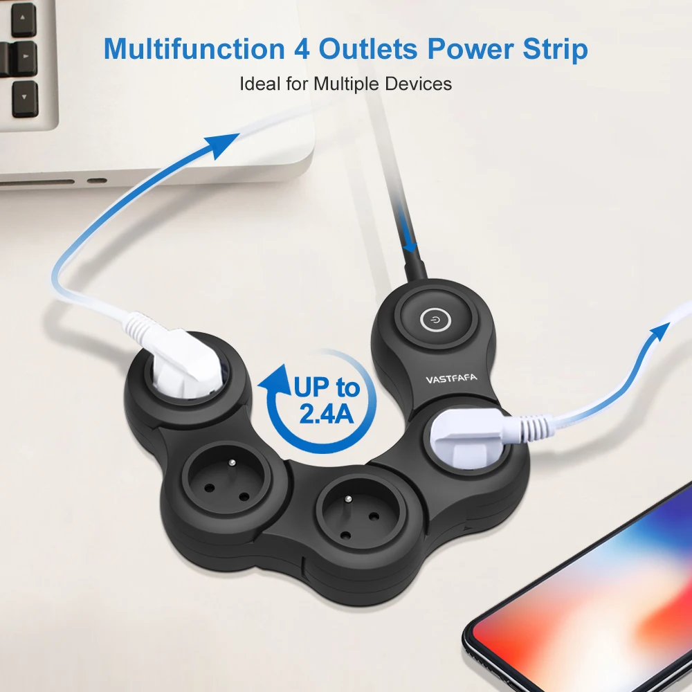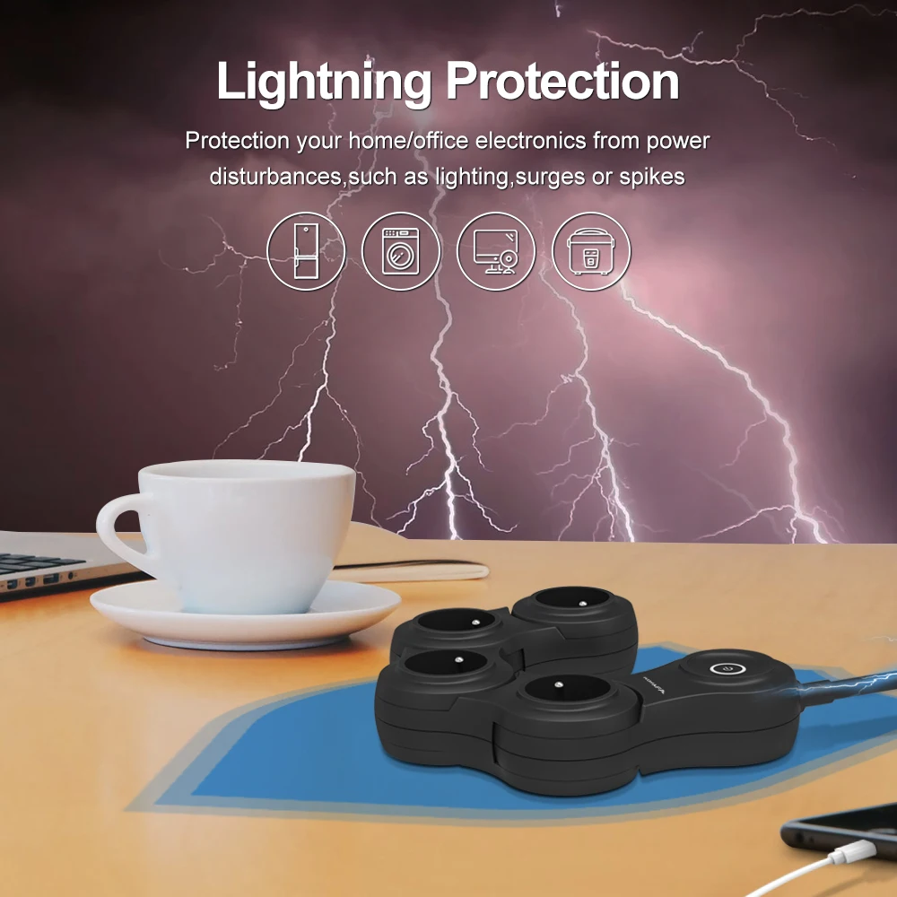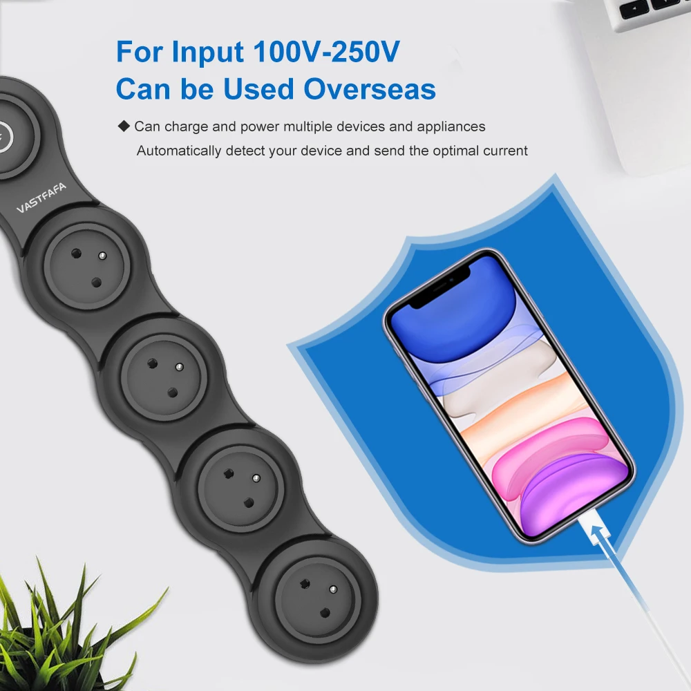 Умный сетевой фильтр с 6 розетками и 2 портами USB для быстрой