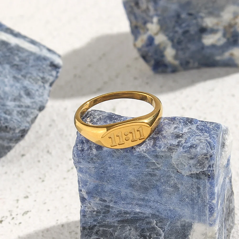 Гарантия Dreamshow Non Tarnish Овальный гравированный Ангел номер 11:11 кольцо из нержавеющей стали позолоченные кольца ювелирные изделия для женщин