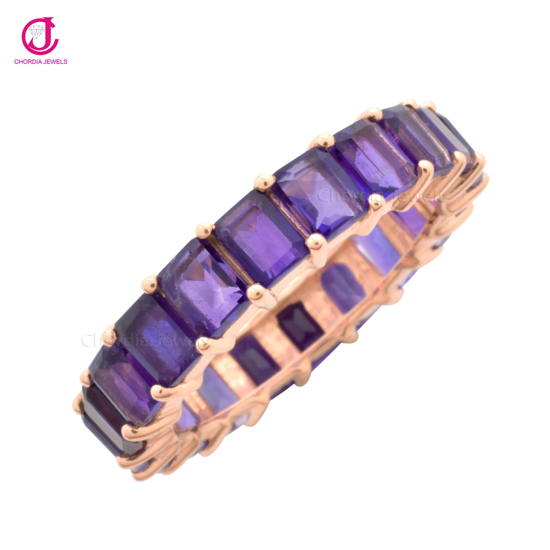 925 стерлингового серебра элегантный вечность микрон плакировкой золота в виде восьмиугольника с аметистовое кольцо золотым напылением ювелирные изделия покрытием на ценовое предложение