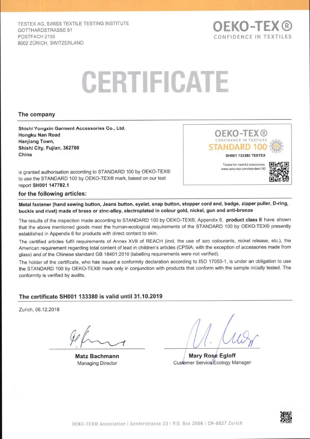 Shishi Yongxin аксессуары для одежды Co., Ltd.