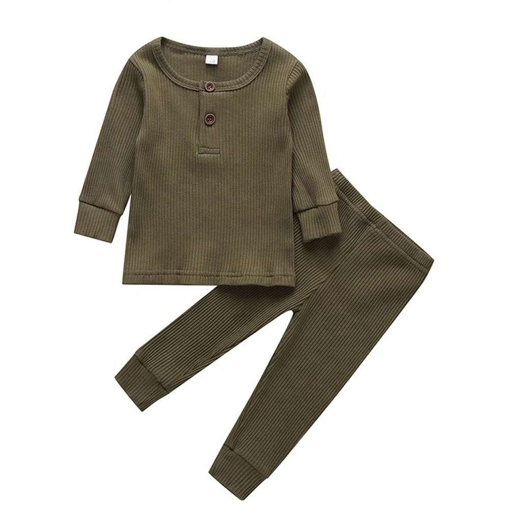 Мягкие эластичные ребристые хлопковые однотонные пижамные комплекты с длинным рукавом детская одежда для сна пижамные комплекты