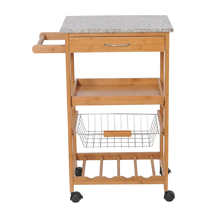 Granite Countertop Wooden Vegetable 4 Tier Kitchen Trolley