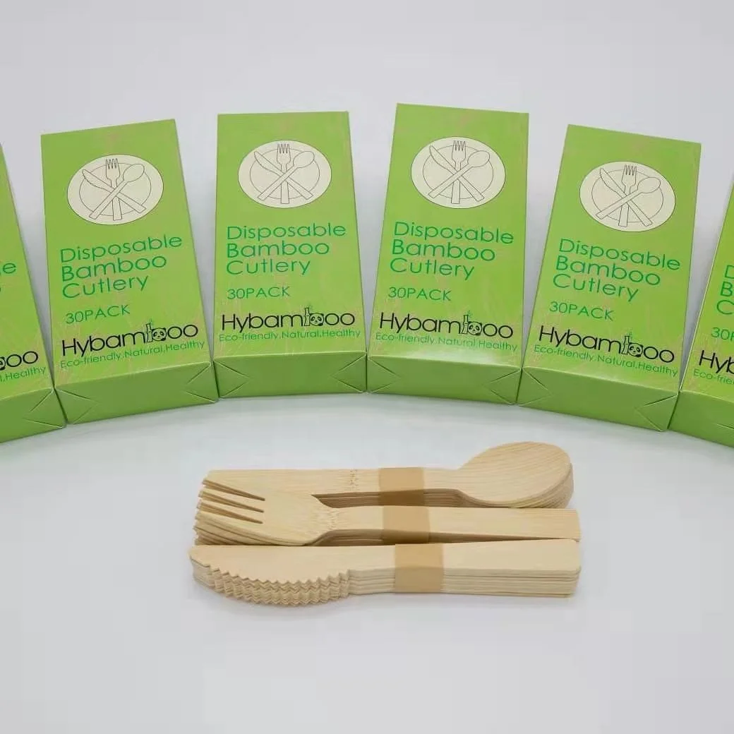 Набор одноразовых бамбуковых столовых приборов, биоразлагаемые, ложка, вилка, нож, с логотипом заказчика