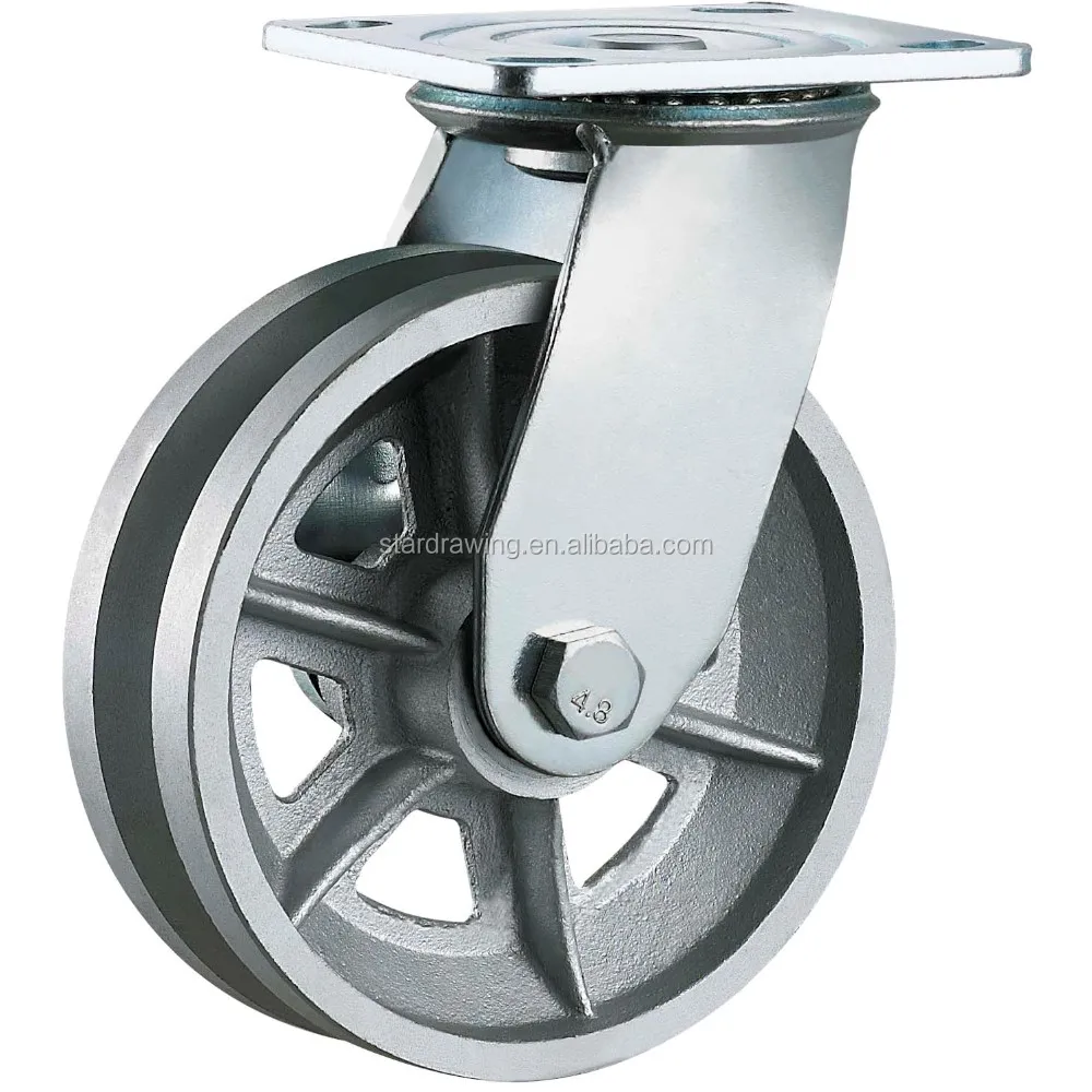 STI V Groove Cast Iron Caster Wheels Heavy Duty Silver Type