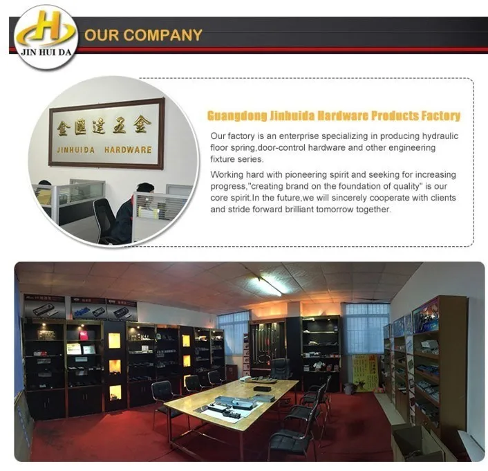 A: Yes, we're kind of the manufactutrer of glass hardware in Jinli Town. Our factory specializes in designing and producing floor spring, patch fitting, door handle, glass lock, door closer,shower hinge, etc.