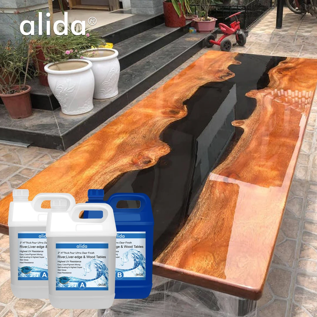 Эпоксидная литая Смола-это глубина, в которой ее можно заливать для больших проектов встраивания мебели, таких как столы и стулья, особенно смешивать с светящимся цветом, чтобы иметь эффект свечения.