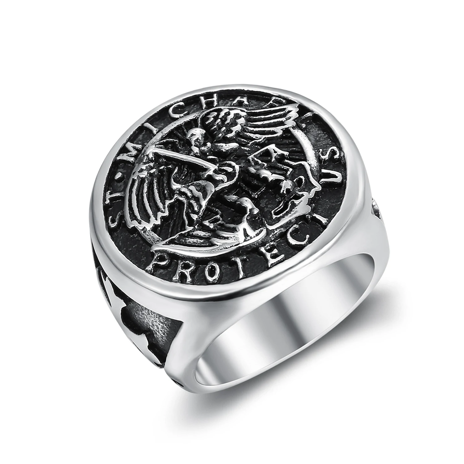 2021 модные ювелирные изделия серебряный светильник в виде ангела Майкл защитит нас слова значок кольцо с узором крест