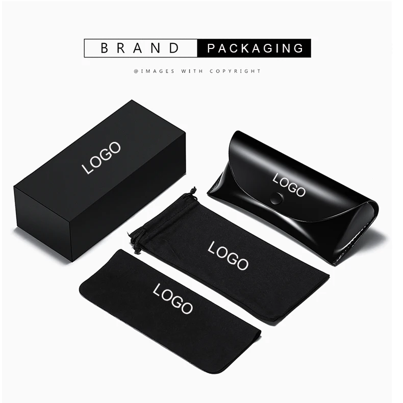 Custom Logo Sunglasses Box Embossed PU Packaging Black Eye Glasses Cleaning Cloth Bag Pouch