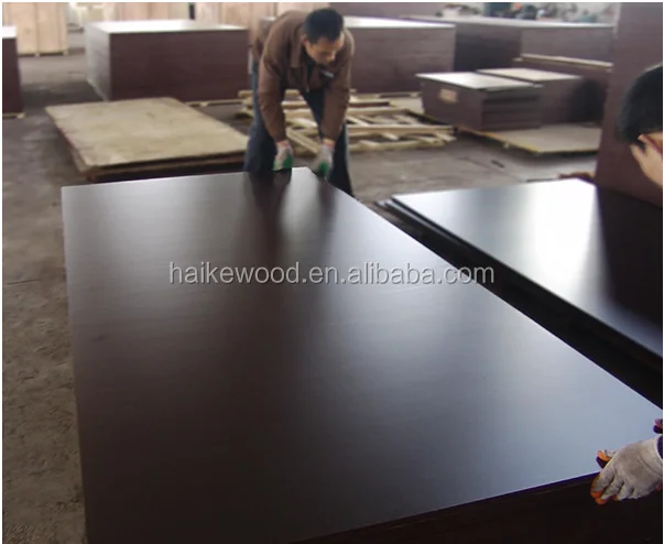 Haike film faced plywood select the high quality poplar,birch as the main materials,after the advanced and strictly processing,the plywood have the following characteristics such as high strength,waterproofing property is strong, can be used repeatedly turnover and so on. It is economic and practical for the construction concrete pouring, for it can be the face panel for any formwork system, single side formwork system,timber beam formwork system, etc.