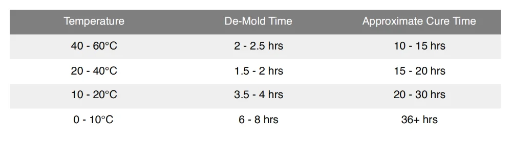 TYPICAL DE-MOLD/CURE TIME: