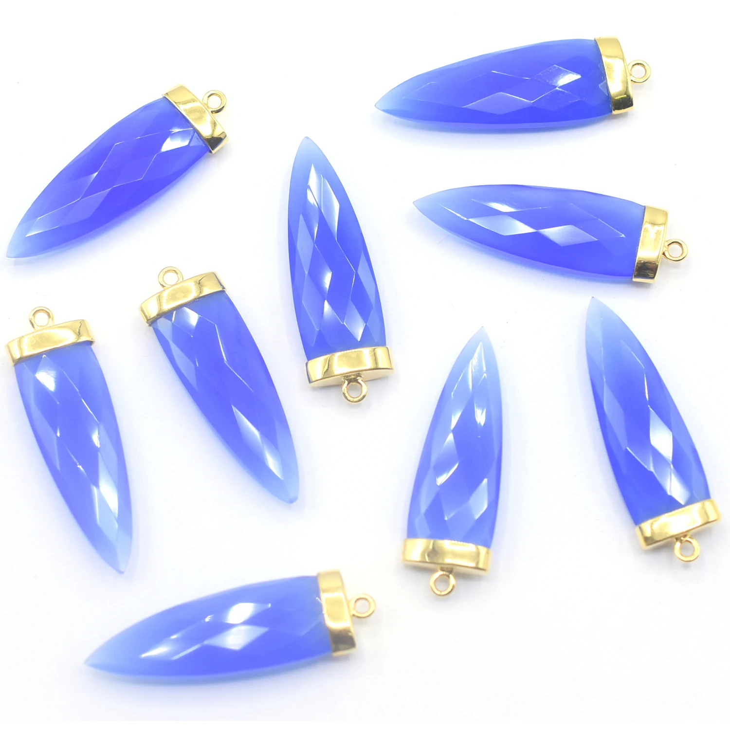10x35 мм синий халцедон кулон в форме стрелы драгоценный камень позолоченный пуля ручной работы натуральный