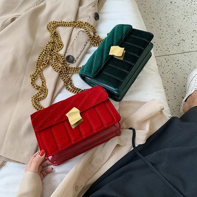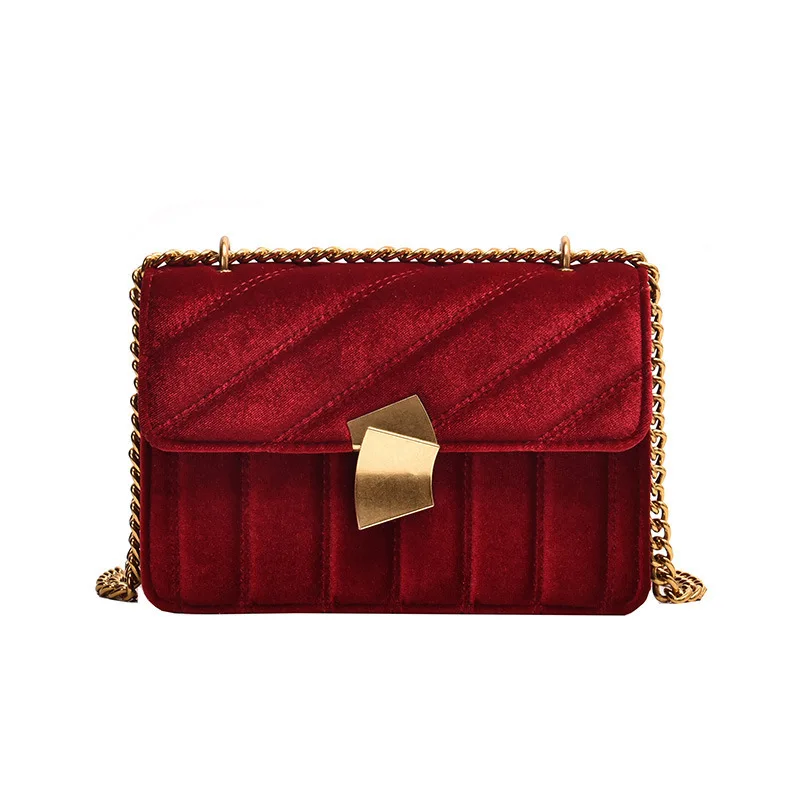 Маленькая квадратная женская сумка, новая модель 2021, женская сумка, модная бархатная Ретро сумка через плечо с металлической цепочкой и замком, сумка через плечо