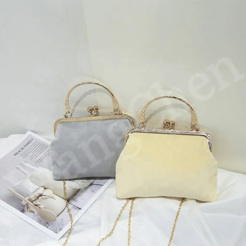 Женская однотонная сумка через плечо, простая золотистая бархатная маленькая квадратная сумка, Индивидуальная сумка с металлической цепочкой и замком
