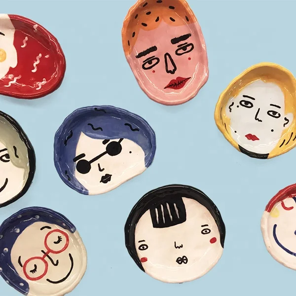 Креативная розовая керамическая тарелка для ювелирных изделий, поднос для хранения губной помады в форме лица для девочек