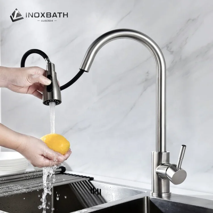 SUS304 Одноместный контактный зажим из нержавеющей стали миксер раковина кран смесители черный смеситель для кухни с тянуть вниз опрыскиватель