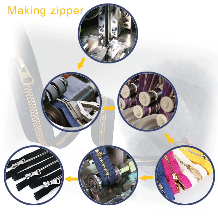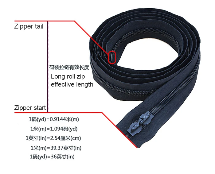 2) For metal zipper by the yard: teeth type, size, length, tape color.