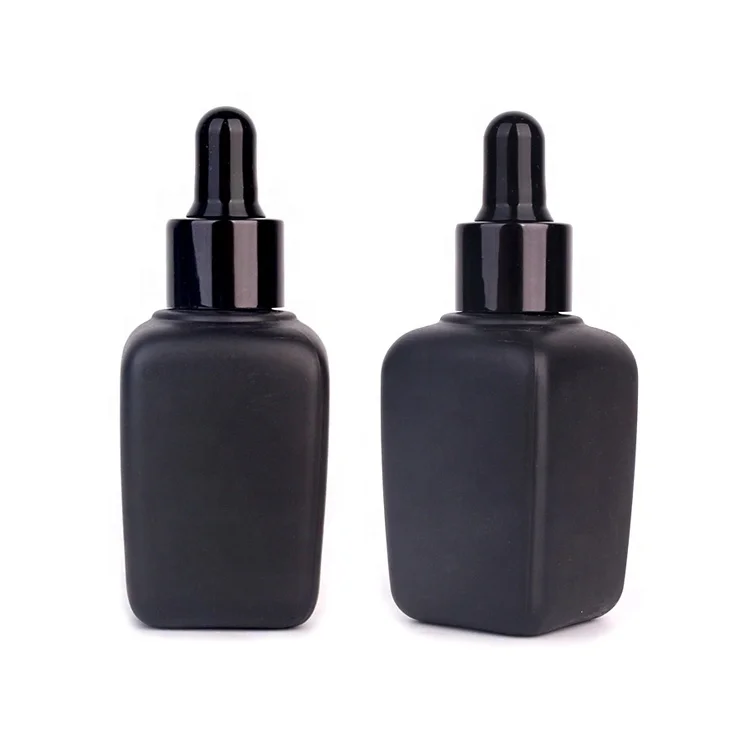 1 унция 30 мл матовая черная квадратная стеклянная бутылка-капельница для сыворотки эфирного масла бутылка ухода за кожей с крышкой пипеткой