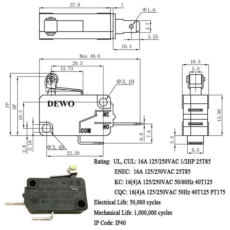 Item | Mini on off roller plunger type 10a t125 5e4 limit micro switch | |