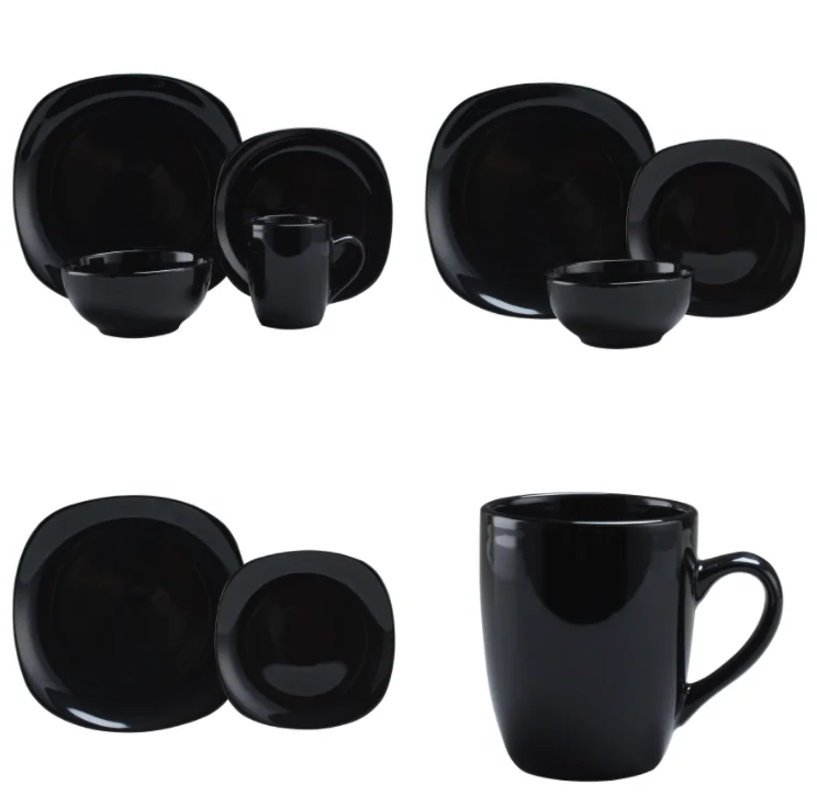 free sample ceramic dinner set square 16/20 pcs stoneware black tableware set dinnerware sets