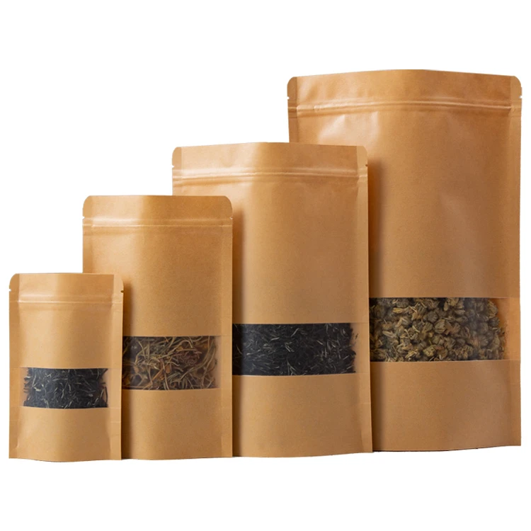 Оптовая продажа, упаковка муки на молнии, коричневая, крафт-бумага с пластиковым матовым окном для печенья/