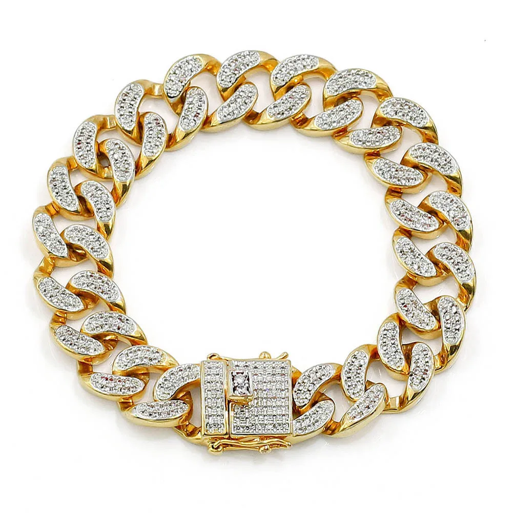 Европейский и американский популярный стильный инкрустированный цирконием браслет в европейском и американском стиле хип-хоп кубинский мужской хип-хоп ювелирный браслет