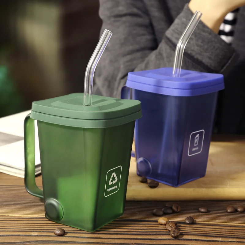 2025 креативная стеклянная кружка квадратной формы для мусора чайная чашка воды кофейная молока с соломой и крышкой