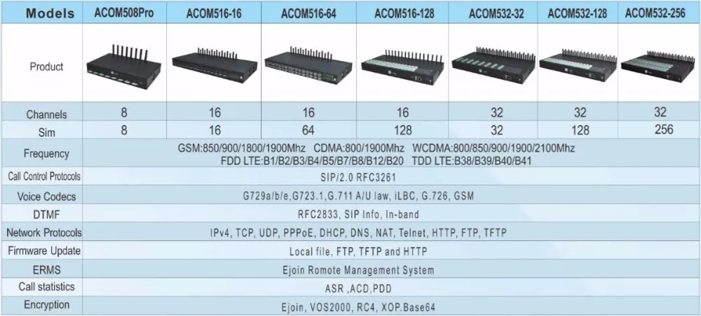 ACOM508 series is able to process traditional voice call service and internet data service, which supports up to 8 concurrent calls.