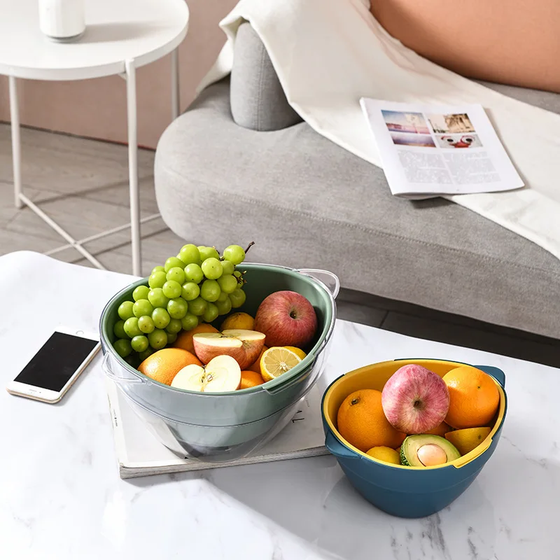 Многофункциональная Пластиковая двухслойная сливная корзина для мытья фруктов и овощей, Кухонное хранилище для очистки риса