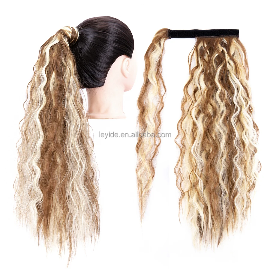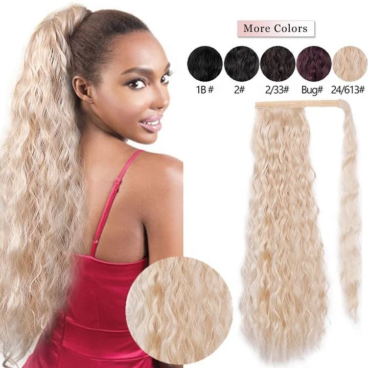 Drawstring Ponytail Synthetic Clip In Hair Extensions 24inch Long Yaki Straight Wrap Around Women's Hairpieces