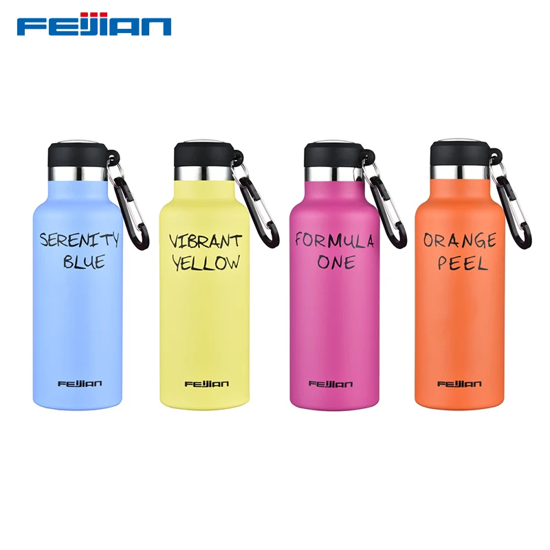 Термос из нержавеющей стали FEIJIAN, 500 мл, бутылка для воды, вакуумная фляжка с карабином, не содержит Бисфенол А, для занятий спортом на открытом воздухе, походов