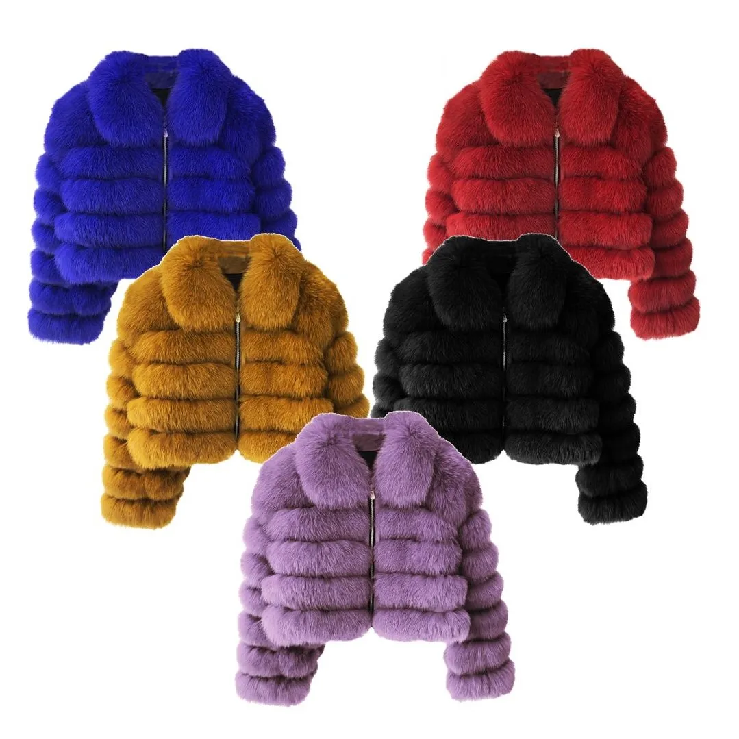 Оптовая продажа Модное Новое дизайнерское Женское пальто теплое короткое большого размера с воротником из натурального меха для девушек куртка зимнее лисьего