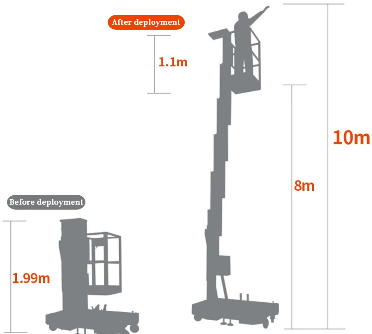 Гидравлическая подъемная платформа из алюминиевого сплава с одной мачтой технический параметр