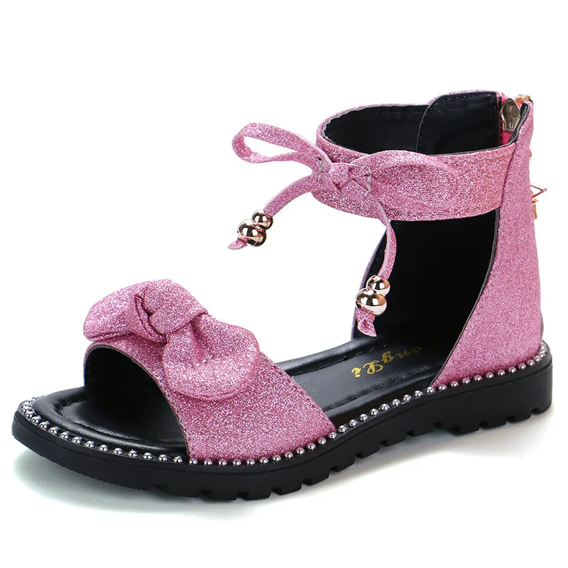 Сандалии принцессы на липучке для девочек, кожаные пляжные босоножки с цветочным рисунком, на лето