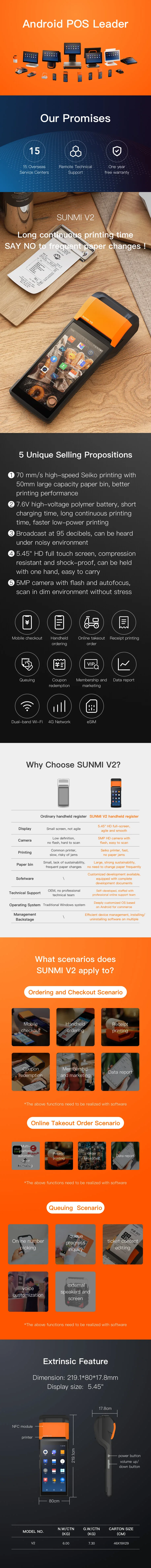 SUNMI provide a one-year free warranty (or optional to provide a certain number of spare machines); unlimited remote technical support services; if the product is damaged in the process of transportation, SUNMI shall bear the responsibility.